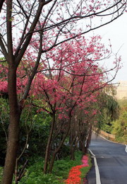 混雜在深色山櫻中的不知道什麼櫻..@.@"