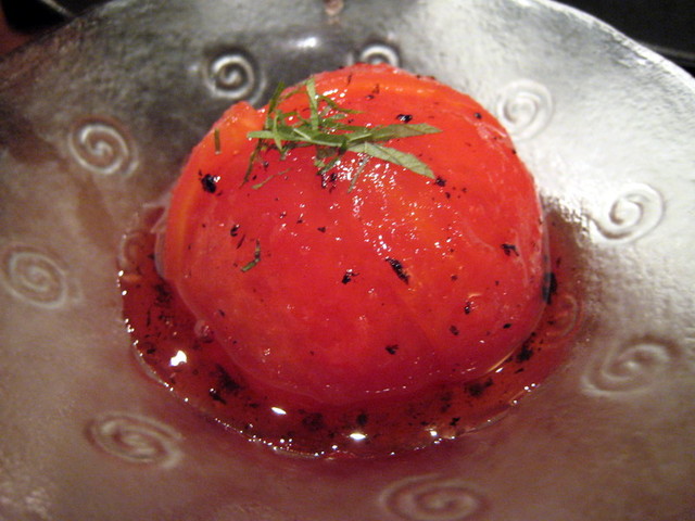 ← 前菜: 加了梅醬(?)的蕃茄,很好吃喔~!!