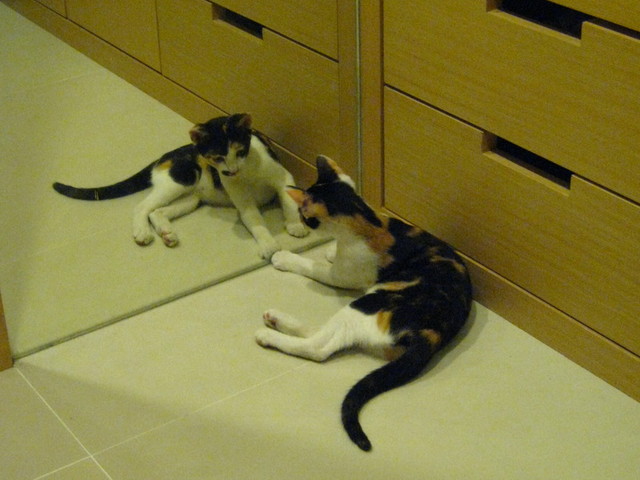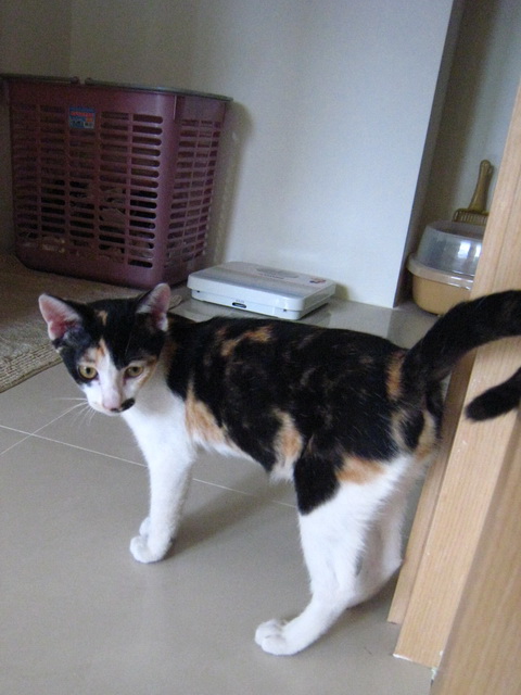 今天把可愛的小三花阿喵接回家囉 (我還是想不到好名字...搞不好就直接阿喵阿喵的叫了|||)